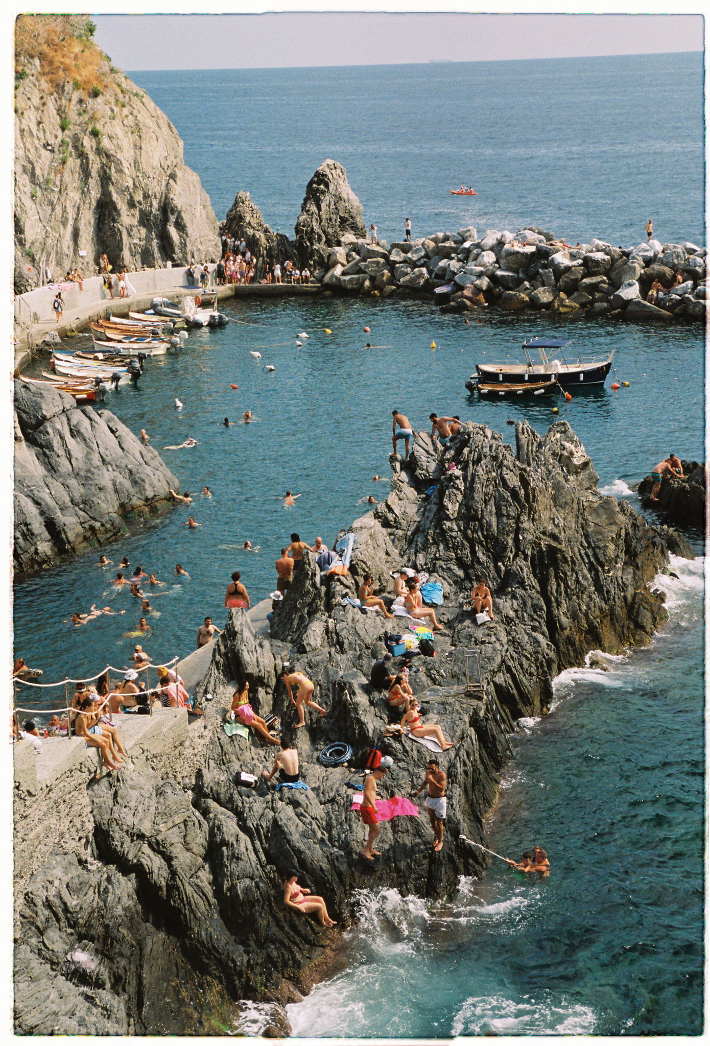 One of my favorite images of a cliff jumper amongst the energy of a summer day in Cinque Terre. A perfect day. Shot on 35mm film.