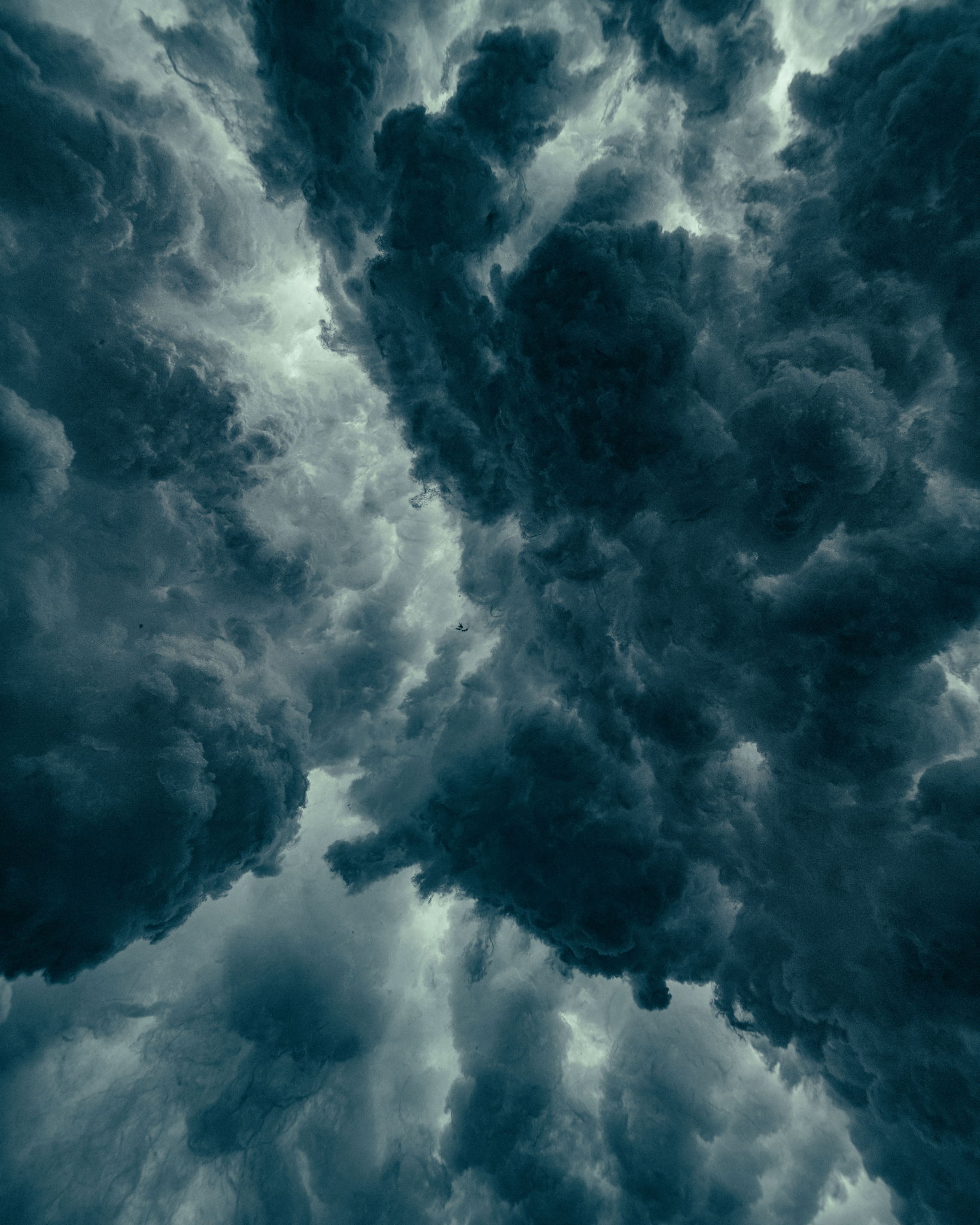 The underside of a Pipeline barrel at the moment it collapses. What looks like storm clouds is actually the underside of a barrel as it detonates over the reef. Light fractures through the chaos, carving texture into the water as the entire wave compresses into a single violent second. From below, it feels less like a surf break and more like a collapsing structure made of water.