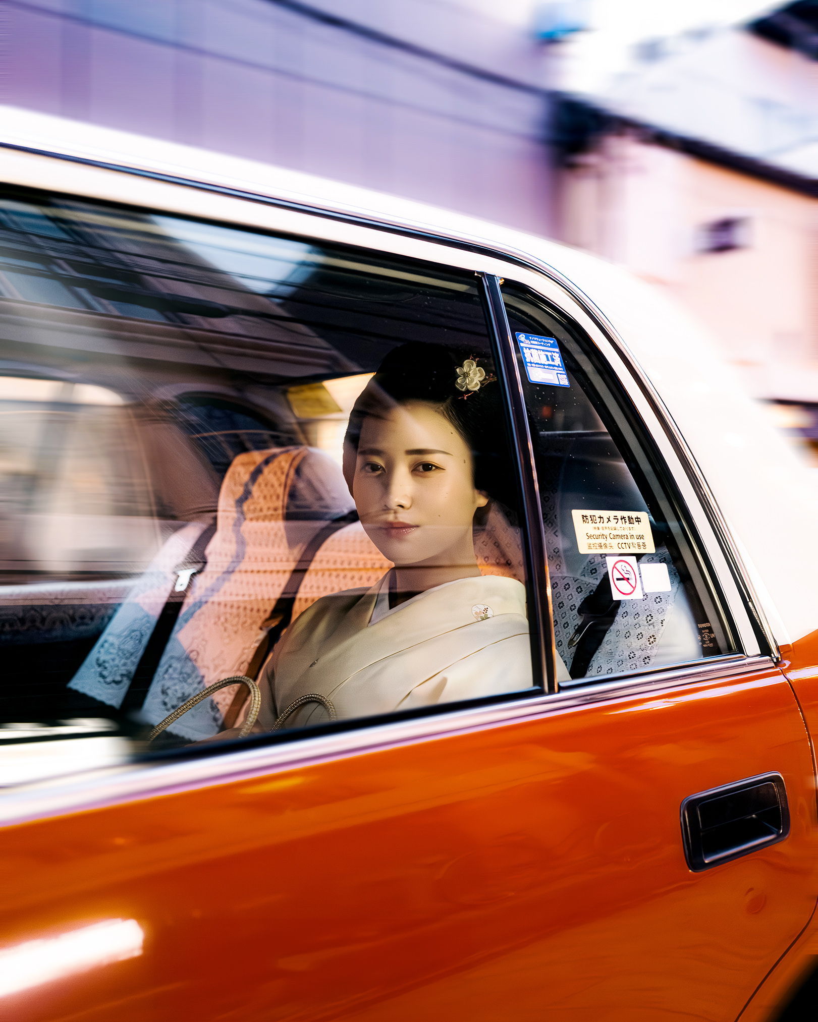 I spent an entire day wandering Kyoto, hoping to find a geisha to photograph. As the sun sank, so did my expectations. Sitting on a bench in Gion, I reached for my phone when a taxi rolled past. In the back seat, a woman calmly applied her makeup. The image I’d been searching for all day. I froze in awe, then followed the cab until it hit a red light. When I caught up, she looked up as if she knew I was there. I pointed at my camera, she nodded, and I took the shot as the taxi turned the corner.