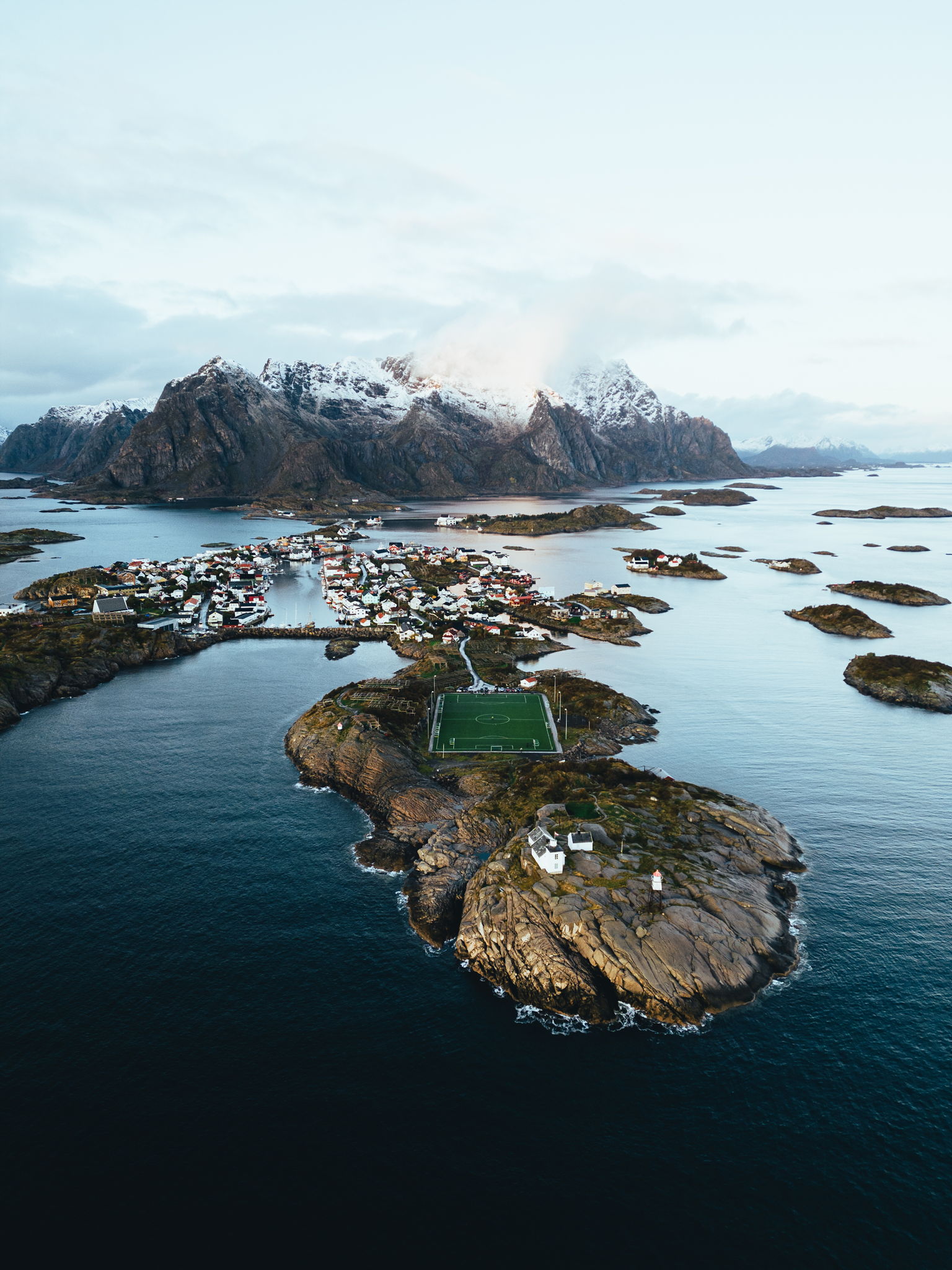 While spending a month living remotely in Norway, I visited the famous Henninsvær Stadium which is still played on today. This was the scene in October right before Northern Lights Season.