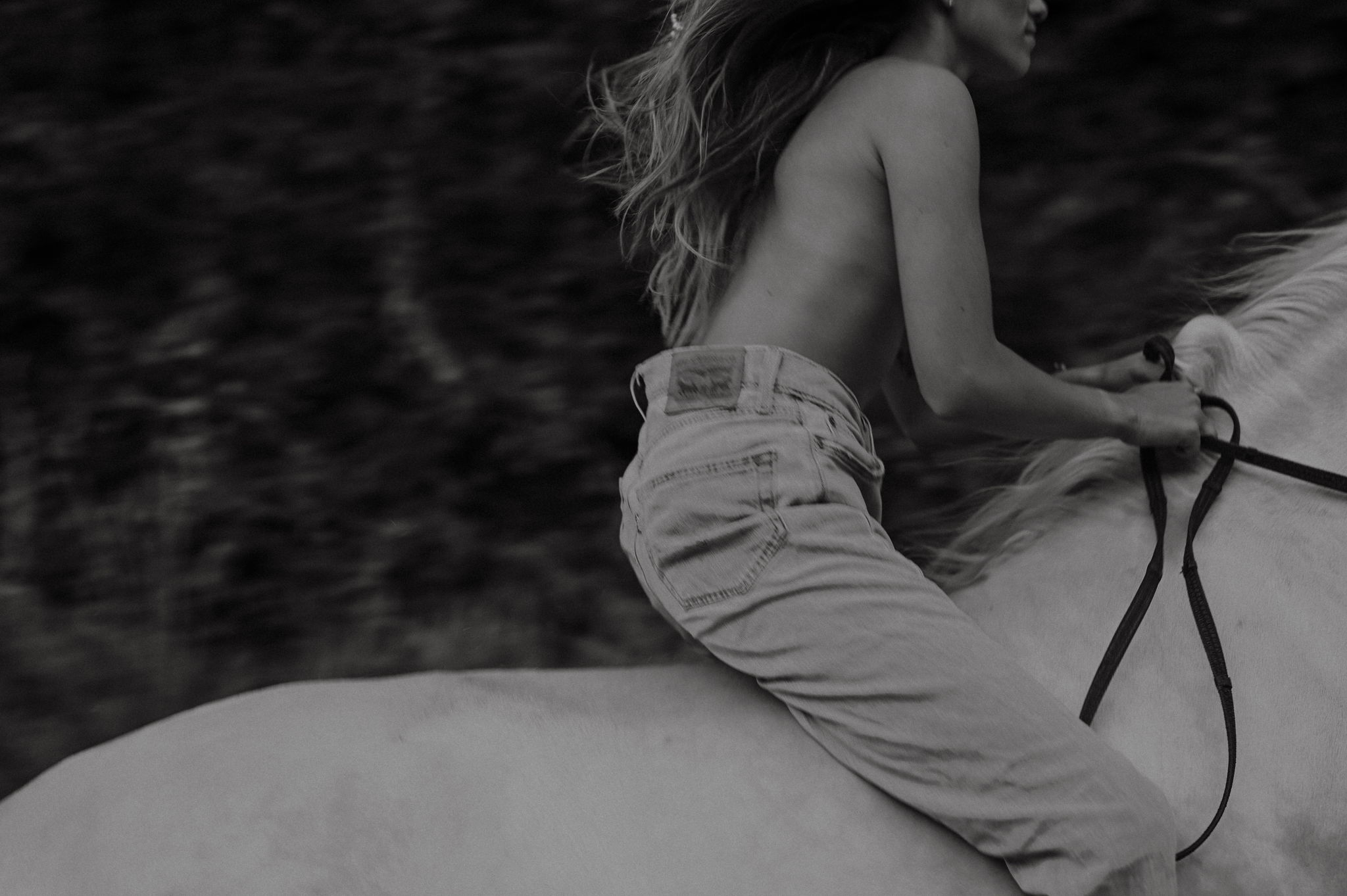 In black and white, the image feels timeless. It could belong to no specific era—just a human seeking freedom, connection, or escape. There’s a sense of returning to something primal: skin against air, body against body, instinct guiding movement more than thought.
