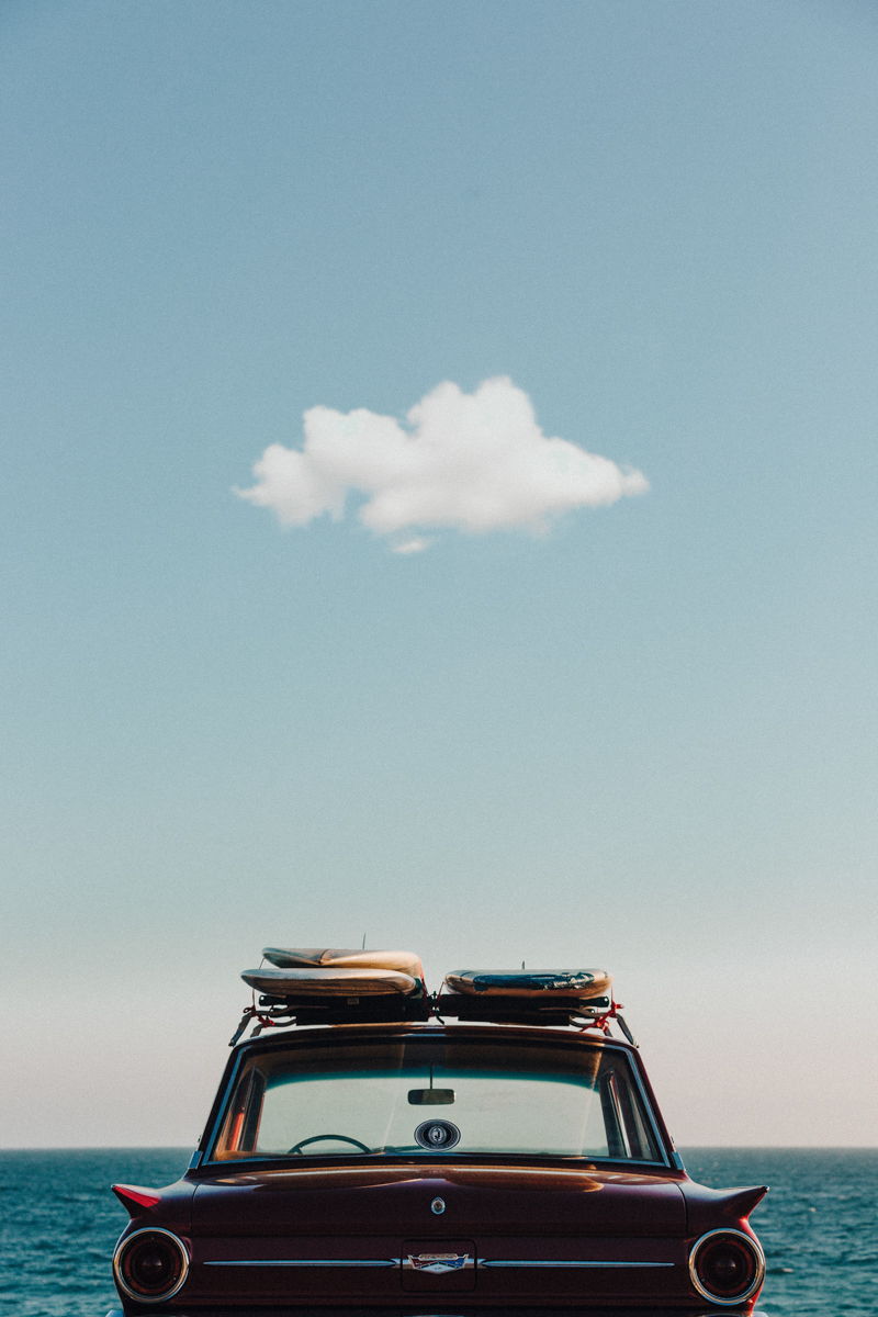 Surfboards stacked on the roof at Point Dume, Malibu.
