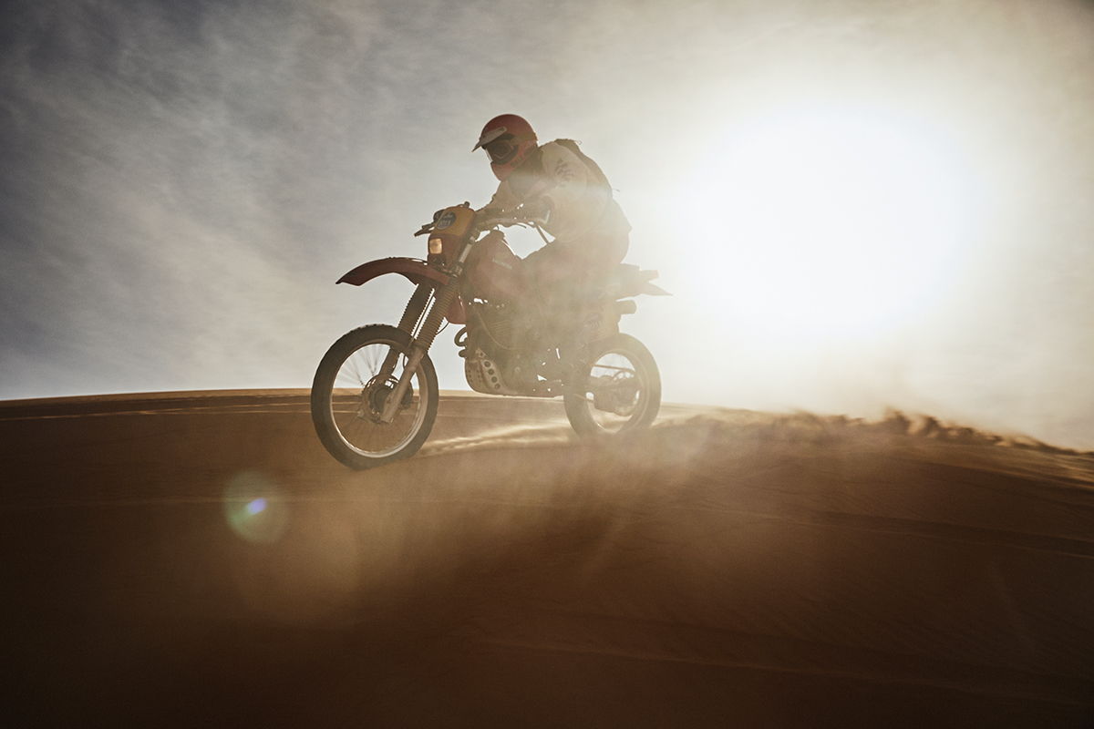 The wind lifts the sand off the ridge tops, erasing every track in seconds. The vastness is silent, a bit intimidating, incredibly magnetic. Like a mineral ocean in constant motion, you feel vulnerable, tiny, crushed by the hostile beauty of these endless expanses. The shifting light either reveals or hides the terrain, depending on its mood, for the rider engaged in these mountains of silica, where danger lurks, just like awe. The desert’s call, you feel it, you don’t write it.