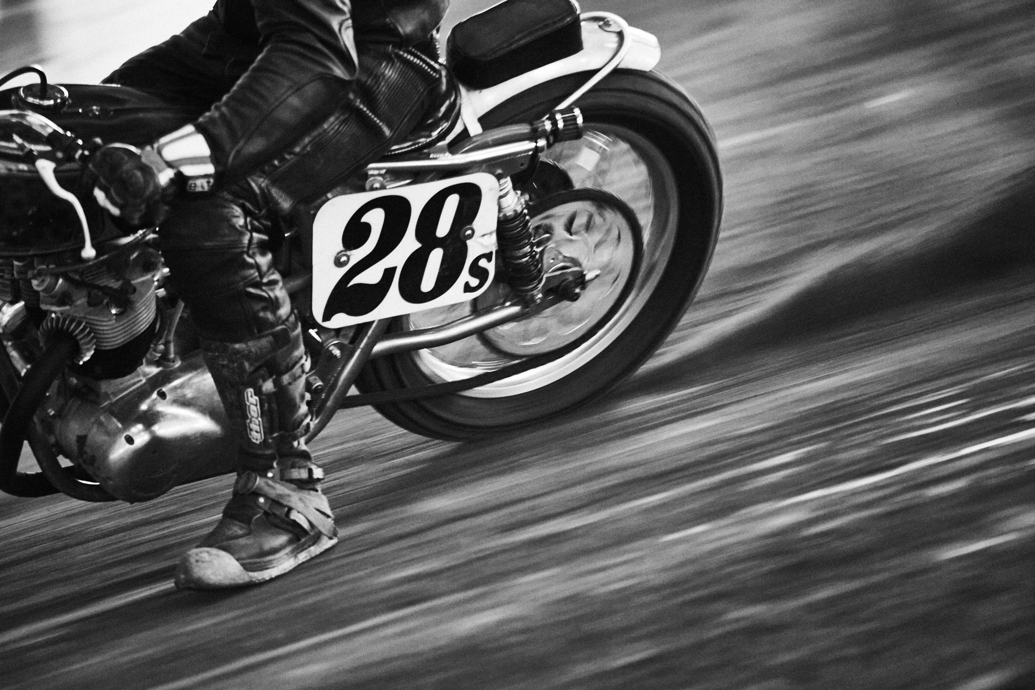 By stripping away color, this monochromatic shot isolates the grit and dynamic motion of the bike. The high contrast amplifies the sense of speed, delivering the raw intensity of the moment without distraction.