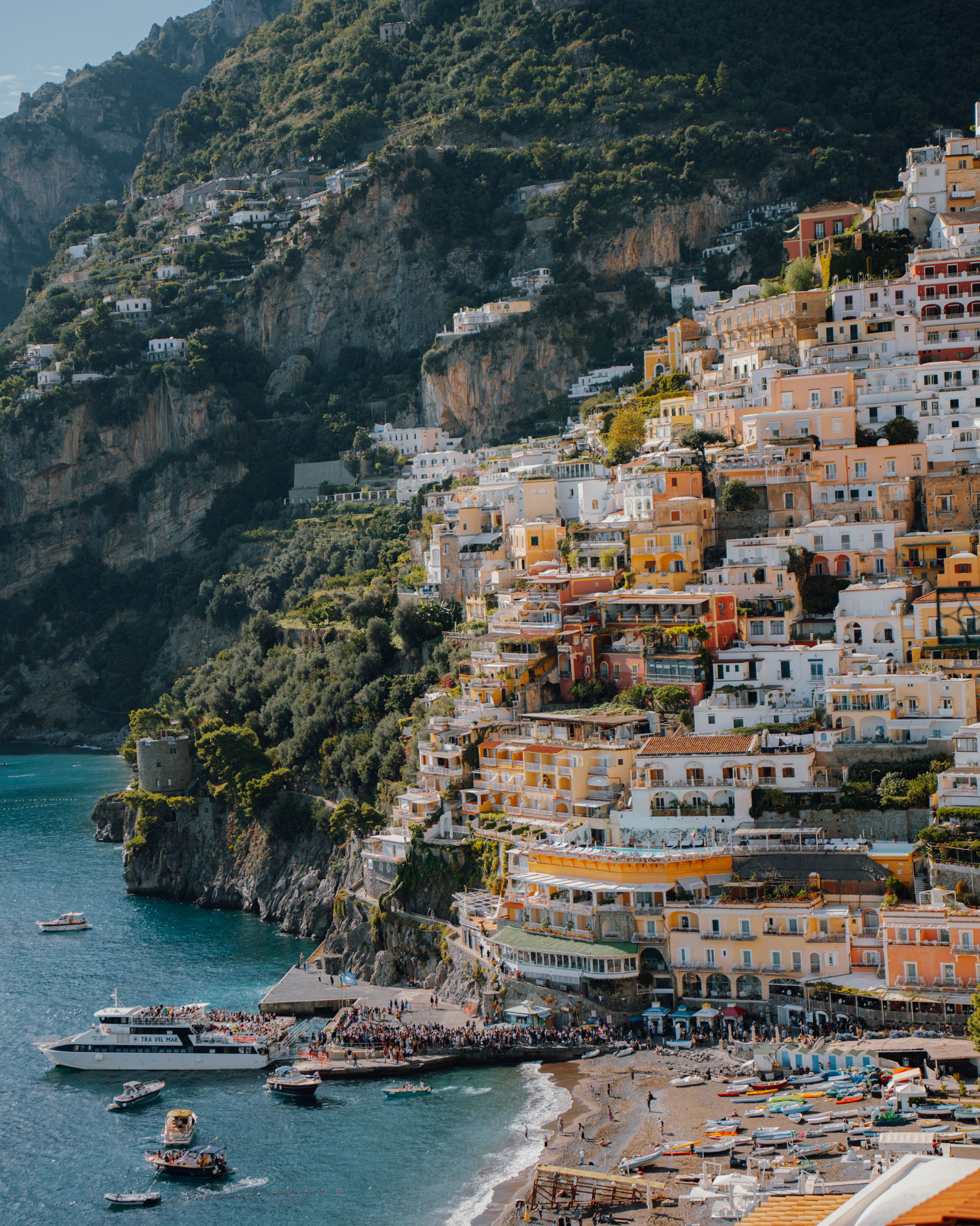 Sun-drenched Sunday in Positano—pastel cliffs glowing, sea sparkling below, and nowhere else I’d rather be