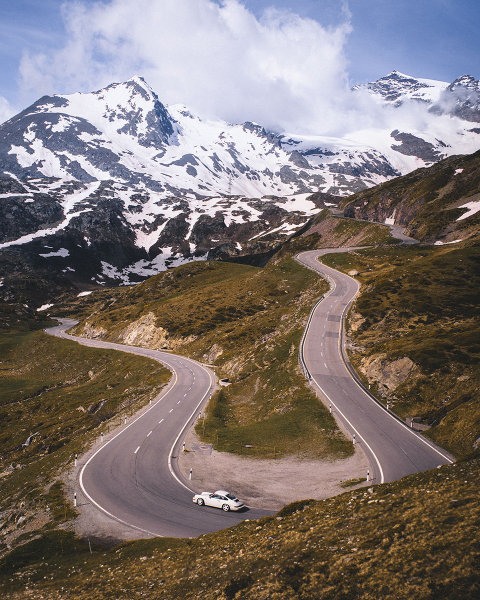 A classic 911 rounds one of the many hairpins of the Bernina Pass in the Swiss Alps. I spotted this hairpin knowing it would make a good picture, so I parked out of the photo, climbed up the hill, and then waited for an interesting car to pass by. I waited a long time, but was rewarded by this Porsche out for a Sunday drive. I could say that the 911 made it worthwhile, but sitting in the sun on the side of the mountain for an hour or so wasn't the worst way to spend a Sunday afternoon.