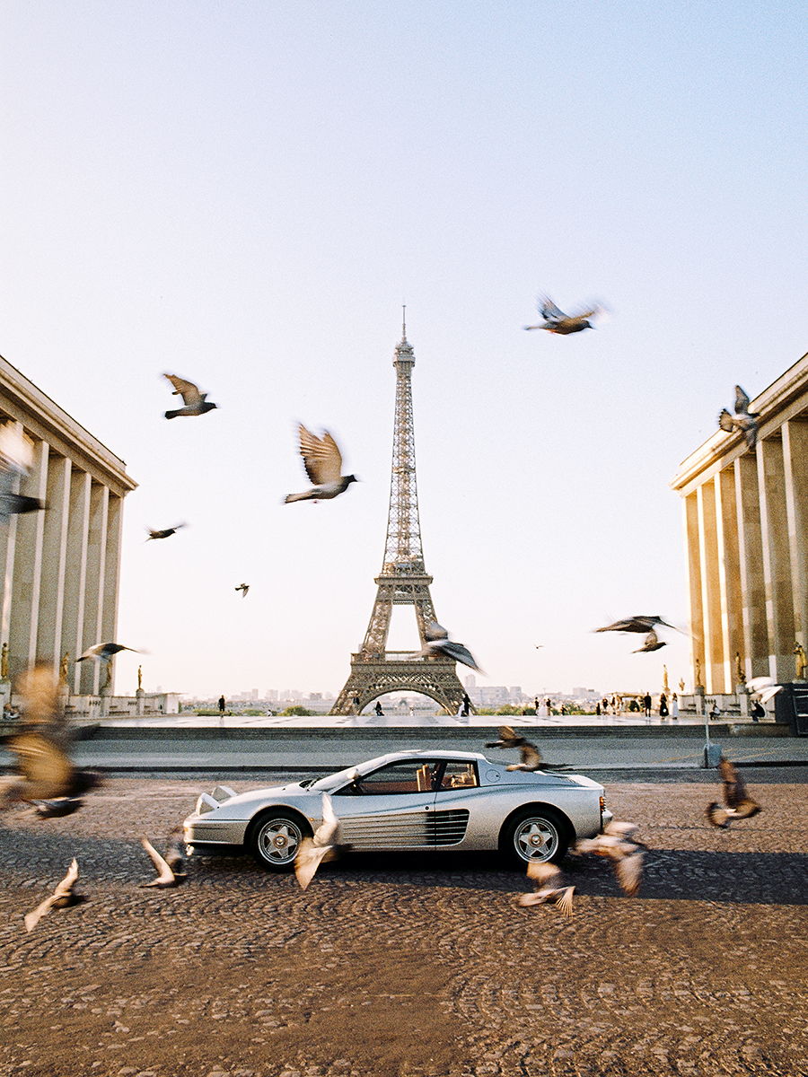A Ferrari Testarossa parked at Trocadero during sunrise. To add life to the frame, my friend helped get pigeons flying in front of the car, creating movement and contrast. Shot on 35mm film with Kodak Gold 200.