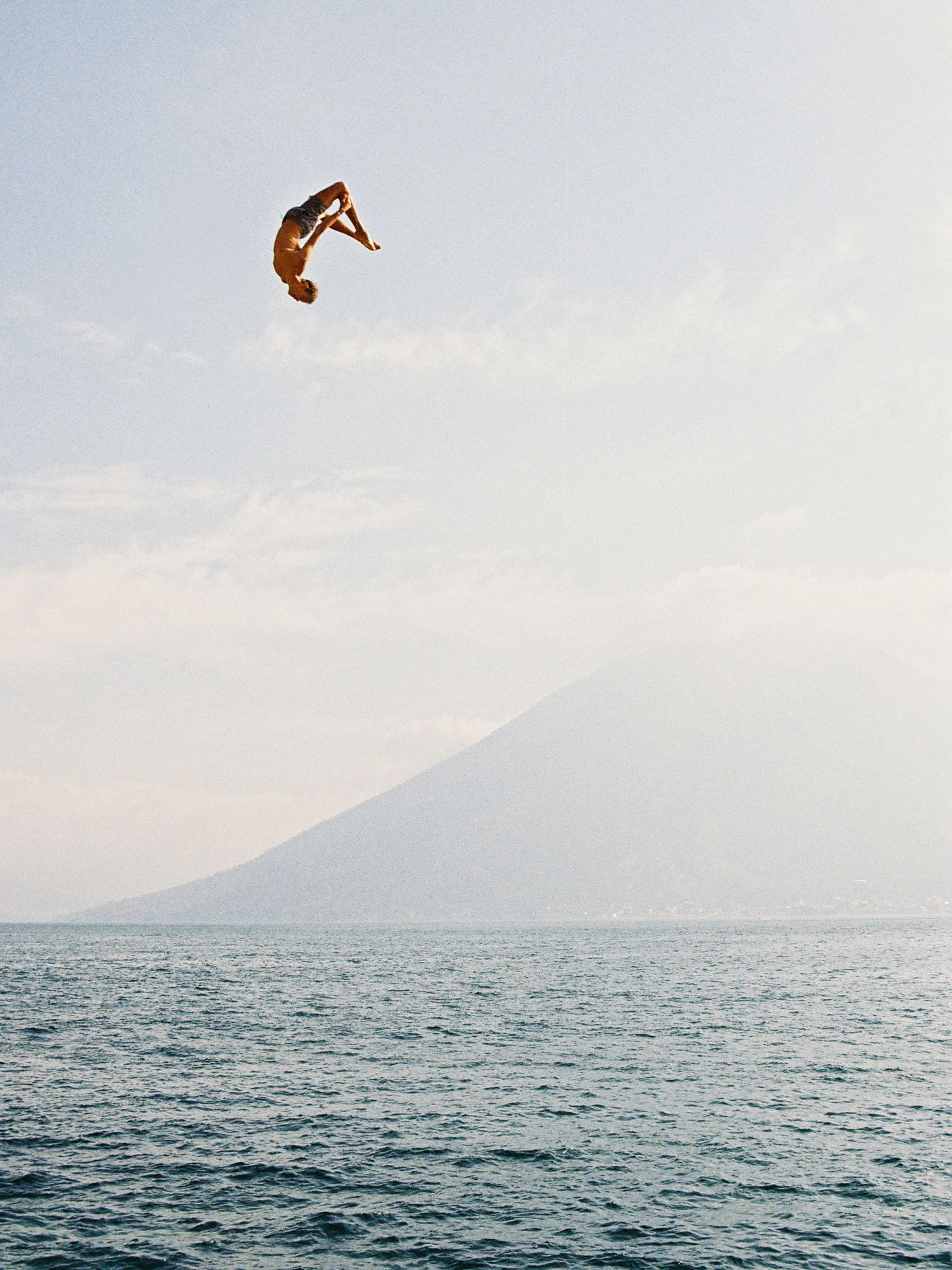 Captured at the infamous cliff jumping spot in San Marcos, Lake Atitlan, Guatemala. February 2026. Watched this guy do a gainer off the 50 ft jump and got in position to get his second of the day, his first two ever. Had a good chat afterwards, his name is Louis André. 35mm Film, shot on Kodak Portra 400 on a Canon EOS1 and a 35mm lens.