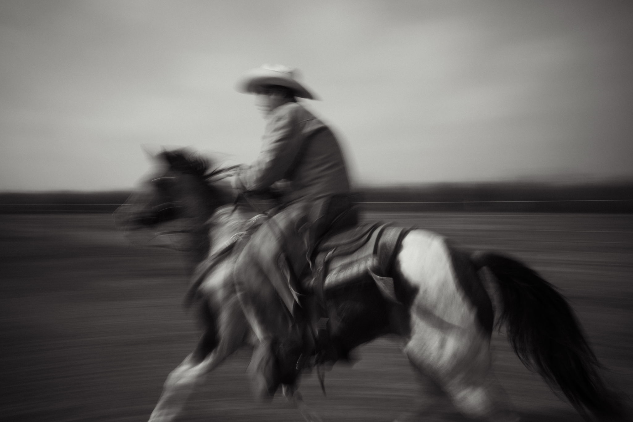 A beautiful scene of a cowboy sprinting towards cattle that had gotten out. His urgency was captured beautifully in this image. The blur was intentional to show the speed that he was traveling at.